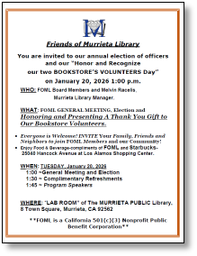 Friends of the Murrieta Library | P.O. Box 235 | Murrieta, CA 92564-0235